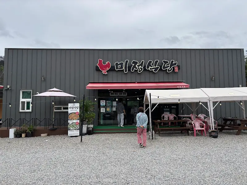 드디어 미정식당에 도착했다. 널찍한 마당이 인상적이었는데, 예상치 못한 광경이 눈에 들어왔다. 닭들이 자유롭게 뛰어놀고 있는 것이 아닌가! 이 녀석들이야말로, 이 집 토종닭의 신선함을 증명하는 살아있는 간판이리라. 닭들의 행복한 모습은, 곧 내 입으로 들어올 요리의 퀄리티에 대한 기대감을 한층 고조시켰다.