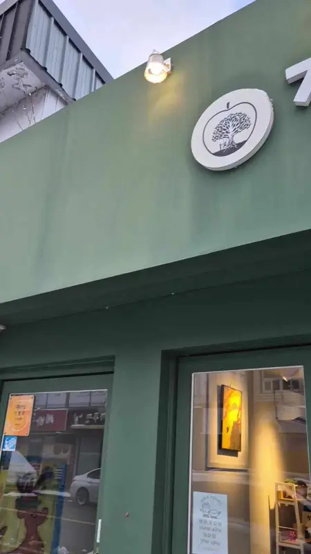 장수 도착하자마자, 녹색으로 칠해진 깔끔한 외관이 눈에 확 들어오더라고. 간판에는 사과나무 그림이 떡하니 박혀있어.