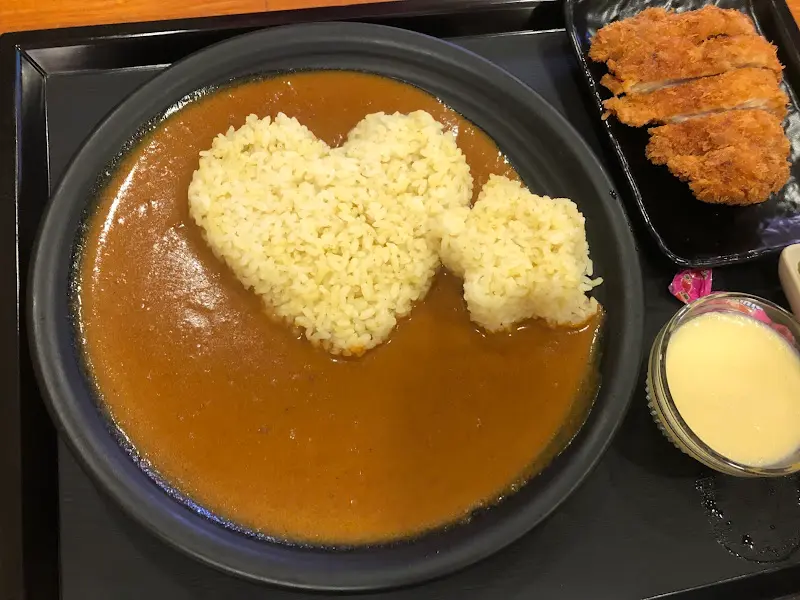 드디어 기다리고 기다리던 카레가 나왔어! 비주얼 진짜 대박이지? 윤기가 좔좔 흐르는 카레 위에 하트 모양 밥이 뿅!😍 돈까스도 큼지막하게 썰어져서 같이 나왔는데, 튀김옷 색깔부터가 남다르더라. 딱 봐도 바삭바삭해 보였어.