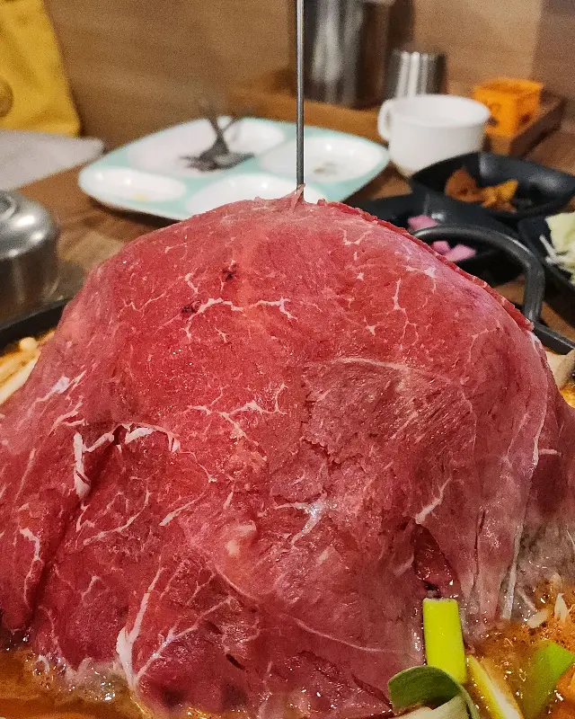높게 쌓아 올려진 신선한 소고기 아래에는 갈비와 각종 야채들이 듬뿍 숨어 있었다. 마치 산처럼 솟아오른 고기 탑은 보는 이로 하여금 감탄을 자아내게 했다. ‘이게 정말 2인분 맞아?’라는 생각이 들 정도로 양이 푸짐했다.