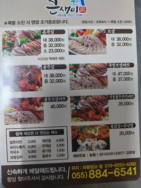 ‘큰상미족’은 단순한 족발집을 넘어, 따뜻한 정과 고향의 맛을 느낄 수 있는 특별한 공간입니다. 한 숟갈 뜨면 고향 생각나는 콩나물국부터, 입에서 살살 녹는 족발, 그리고 사장님의 푸근한 인심까지, 모든 것이 완벽했습니다. 창녕에 방문하신다면, 꼭 한번 들러보셔서, 저처럼 행복한 추억을 만들어 가시길 바랍니다.