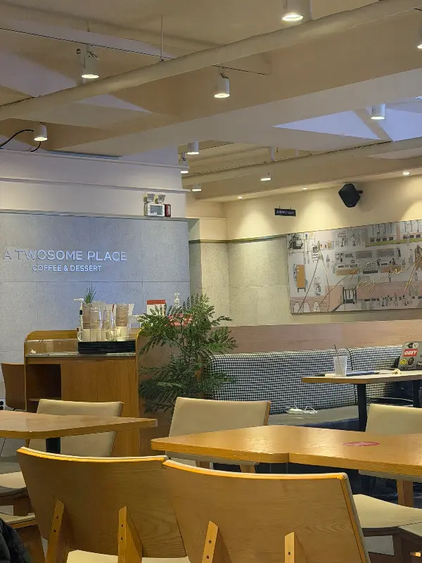 가게 문을 열고 들어서니, 은은한 커피 향이 코를 간지럽히는 게 기분을 확 좋게 만들더라고. 마침 점심시간이 지난 시간이라 그런지, 매장 안은 사람들로 북적거렸어. 깔끔하고 모던한 인테리어 덕분에 더욱 활기찬 느낌이 들었지. 천장의 조명이 은은하게 빛나고, 테이블 간 간격도 넓어서 편안하게 대화하기 좋아 보였어. 마침 창가 자리가 하나 비어 있길래 냉큼 자리를 잡았지 뭐야.