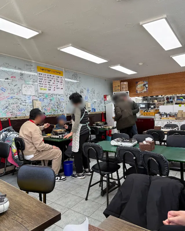 가게 문을 열고 들어서니, 아늑하고 정겨운 분위기가 푸근하게 감싸안는 느낌이야. 벽에는 학생들의 낙서가 빼곡하게 적혀있고, 테이블은 정겹게 놓여있어. 마치 시간 여행을 떠나온 듯한 기분이랄까? 옛날 생각에 괜히 마음이 설레는 거 있지.