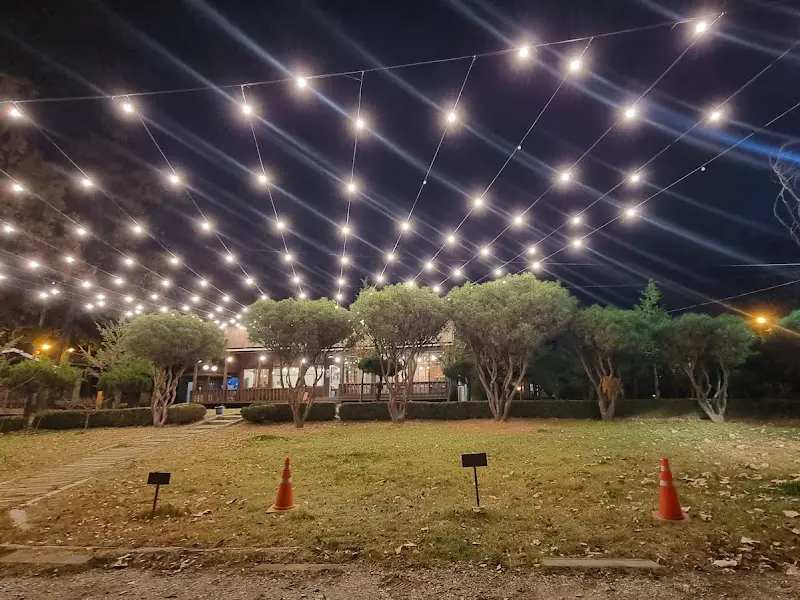 드넓은 정원에 들어서니, 밤하늘을 수놓은 듯 반짝이는 조명이 눈에 띄었어. 아이들이 뛰어놀기 좋은 아담한 놀이터도 마련되어 있어서, 가족 단위 손님들이 편안하게 식사할 수 있겠더라. 징검다리랑 작은 연못도 있어서 구경하는 재미가 쏠쏠했어.
