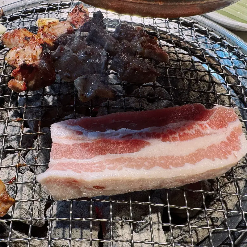 숯불 위에서 맛있게 익어가는 고기, 야들야들한 육질이 살아있네!