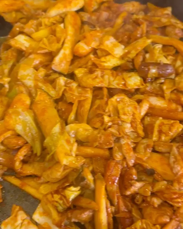 드디어 기다리던 닭갈비가 등장했다. 커다란 철판 가득 담긴 닭갈비의 모습은 그야말로 장관이었다. 붉은 양념에 버무려진 닭다리살과 싱싱한 야채, 쫄깃한 떡 사리가 한데 어우러져 시각적인 즐거움을 선사했다. 사장님께서는 능숙한 솜씨로 닭갈비를 볶아주셨다. 철판 위에서 지글거리는 소리와 함께 매콤한 향이 더욱 강렬해졌고, 침샘은 쉴 새 없이 자극받았다.