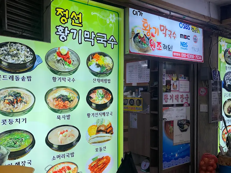 정선 아리랑 시장, 그 활기 넘치는 풍경 속으로 발걸음을 옮겼다. 왁자지껄한 웃음소리와 흥정하는 목소리가 뒤섞여, 마치 오래된 영화 속 한 장면처럼 정겨운 분위기가 감돌았다. 시장 입구에서부터 풍겨오는 갖가지 음식 냄새는 어린 시절 할머니 손을 잡고 찾았던 시골 장터의 향수를 불러일으켰다. 오늘 나의 목적지는, 이 시장통 깊숙한 곳에 자리 잡은 ‘황기막국수’다.