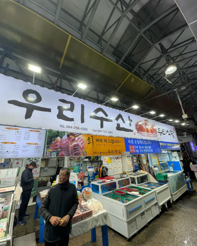 오늘 저녁, 제주 동문시장 ‘우리수산’에서 싱싱한 회 한 접시 어때? 절대 후회하지 않을 선택이 될 거야! 그럼, 맛있는 제주 여행 즐기길 바랄게! 안녕! 👋