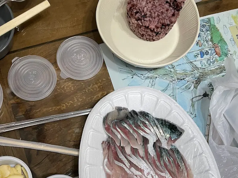 사장님께서 직접 고등어회를 맛있게 먹는 방법을 설명해주셨다. 톳 쌈장에 찍어 김에 싸 먹으면 고등어 특유의 풍미를 제대로 느낄 수 있다고! 사장님의 친절한 설명 덕분에 더욱 기대감이 부풀어 올랐다.
