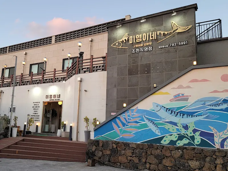 푸른 물결이 넘실대는 제주 조천읍의 해안도로를 따라 달리다 보면, 마치 바다를 품에 안은 듯 자리 잡은 ‘미영이네’가 눈에 들어온다. 건물 외벽에는 푸른 바다를 유영하는 고등어 그림이 생동감 넘치게 그려져 있어, 이곳이 고등어회 전문점임을 단번에 알 수 있었다.