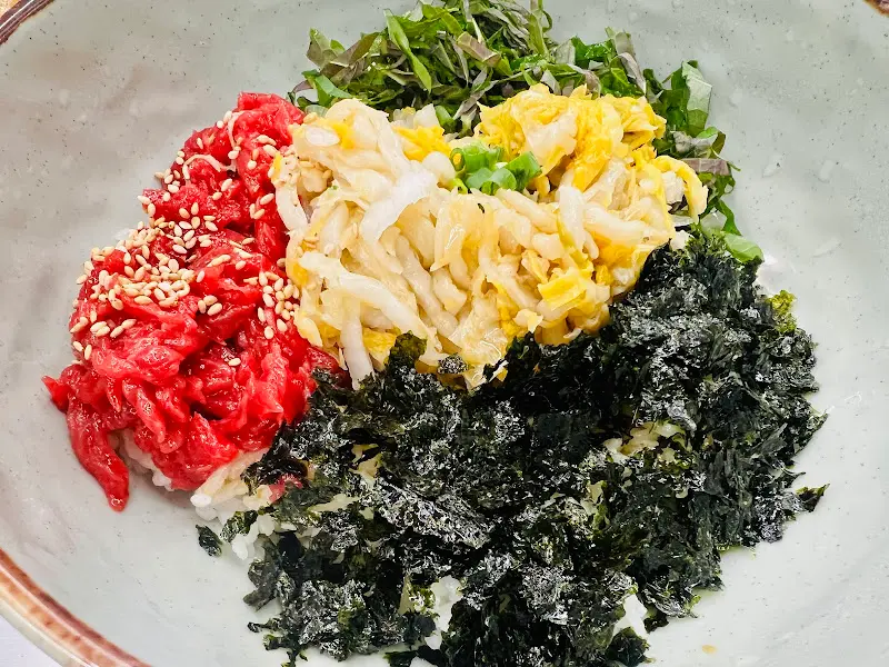 보통 육회비빔밥은 초장 베이스의 양념을 사용하는 경우가 많은데, 자매집은 들기름을 사용하여 재료 본연의 맛을 살린 점이 인상적이었다. 들기름은 묵은지의 맛을 더욱 깊게 만들어주고, 다른 재료들과의 조화도 훌륭하게 이끌어냈다. 마치 회덮밥을 먹는 듯한 느낌이 전혀 들지 않았다는 점도 좋았다.