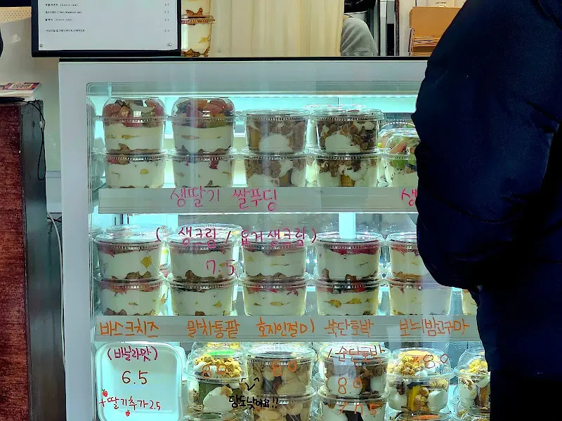 가게 안으로 들어서니, 아늑하면서도 깔끔한 분위기가 물씬 풍기더라고. 테이블이 많지는 않았지만, 오히려 그 덕에 조용하고 편안하게 디저트를 즐길 수 있었어유. 젊은 사장님께서 어찌나 친절하신지, 빵 하나하나에 대해 꼼꼼하게 설명해주시는 모습이 인상 깊었어유. 빵에 대한 열정이 느껴져서 그런가, 덩달아 기분도 좋아지더라고.