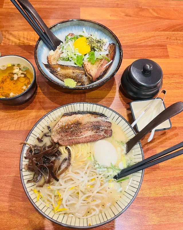 돈코츠라멘과 마제소바의 환상적인 조합!