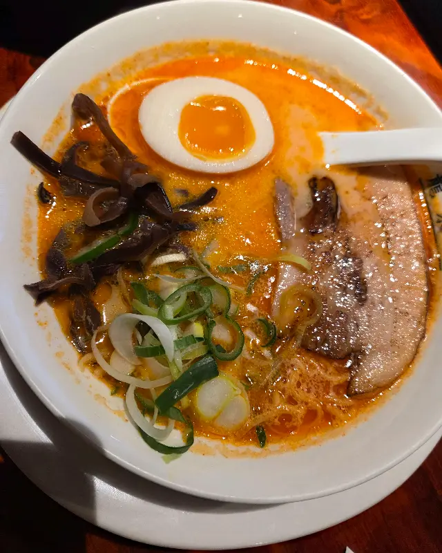 드디어 기다리고 기다리던 라멘 등장! 류센소 라멘은 국물부터가 진짜 진국이었다. 돼지 뼈를 오랜 시간 우려낸 육수라고 하는데, 깊고 풍부한 맛이 입안 가득 퍼지는 게 진짜 황홀경 그 자체였다. 면발도 탱글탱글 살아있고, 차슈도 야들야들 부드러워서 입에서 살살 녹았다. 특히 반숙 계란… 이거 진짜 미쳤다! 노른자가 어찌나 촉촉한지, 국물에 살짝 풀어 먹으니 천상의 맛이었다.
