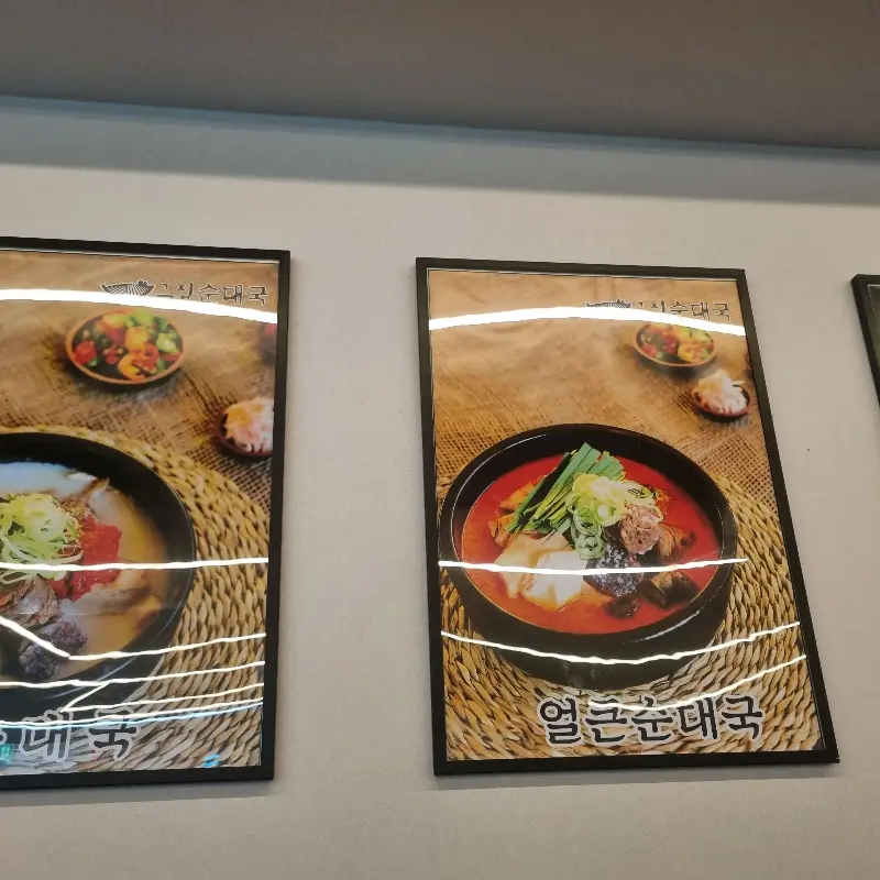 메뉴판을 보니 순대국 종류가 정말 다양했다. 기본 순대국부터 얼큰 순대국, 뽈살 순대국, 통마늘 순대국, 숙주나물 순대국, 마라 순대국, 우거지 순대국까지! 취향에 따라 골라 먹을 수 있다는 점이 큰 매력으로 다가왔다. 뭘 먹을까 고민하다가, 오늘은 얼큰한 게 땡겨서 얼큰 순대국을 주문했다. 다음에는 뽈살 순대국이나 통마늘 순대국도 먹어봐야지. 벌써부터 다음 방문이 기대된다. 벽에 붙은 메뉴 사진들을 보니, 얼큰 순대국에는 붉은 국물에 숙주와 파가 듬뿍 올려져 있어 시각적으로도 식욕을 자극했다.