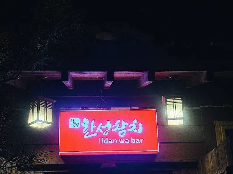 사실 참치에 대한 나의 기대치는 그리 높지 않았다. 뷔페에서 흔히 접하는 냉동 참치의 퍽퍽한 식감과 밍밍한 맛이 전부라고 생각했으니까. 하지만 친구의 강력한 추천에 못 이겨 방문한 한성참치는, 첫인상부터가 남달랐다. 간판에는 “일단 와bar”라는 정겨운 문구가 쓰여 있었다. 밤하늘 아래 붉은 네온사인 간판이 빛나는 모습은 묘한 기대감을 불러일으켰다. 촌스러운 듯하면서도, 어딘가 모르게 힙한 분위기가 느껴졌달까. 마치 숨겨진 보물을 찾아 나서는 탐험가의 심정으로 가게 문을 열었다.