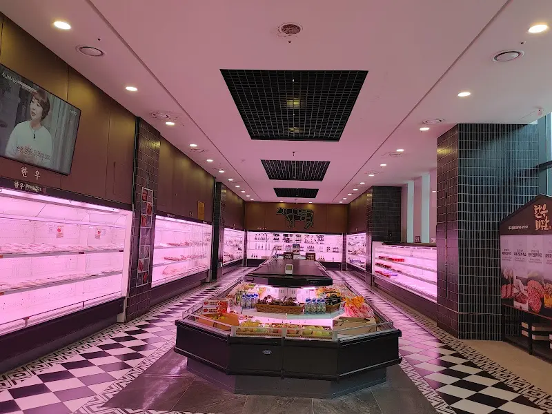 2층으로 올라가는 길, 1층 정육 코너를 지나치게 된다. 붉은 조명 아래 진열된 다양한 부위의 한우는 신선함을 뽐내고 있었고, 마치 고급 식료품점에 온 듯한 느낌을 주었다. 1층에는 안내 직원이 상주하고 있어, 2층 식당 이용에 대한 안내를 친절하게 받을 수 있었다. 엘리베이터 앞까지 직접 안내해 주는 세심한 배려 덕분에 기분 좋게 식사를 시작할 수 있었다.