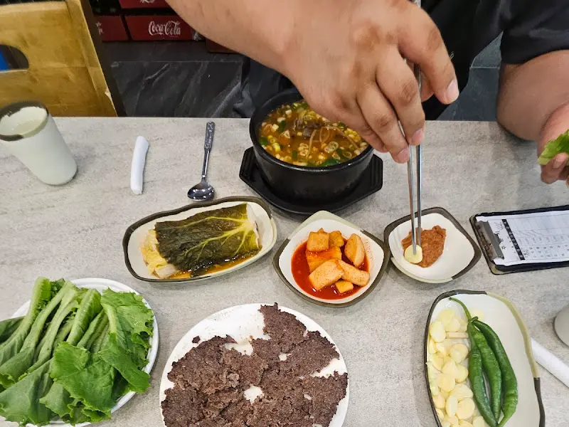 임진각 식당의 밑반찬은 소불고기와 소국밥의 맛을 더욱 풍성하게 해줍니다. 특히, 갓 담근 듯 신선한 상추와 아삭한 백김치는 빼놓을 수 없는 별미입니다. 쌈장, 마늘, 고추 등도 신선하게 제공되어, 풍성한 쌈을 즐길 수 있습니다.