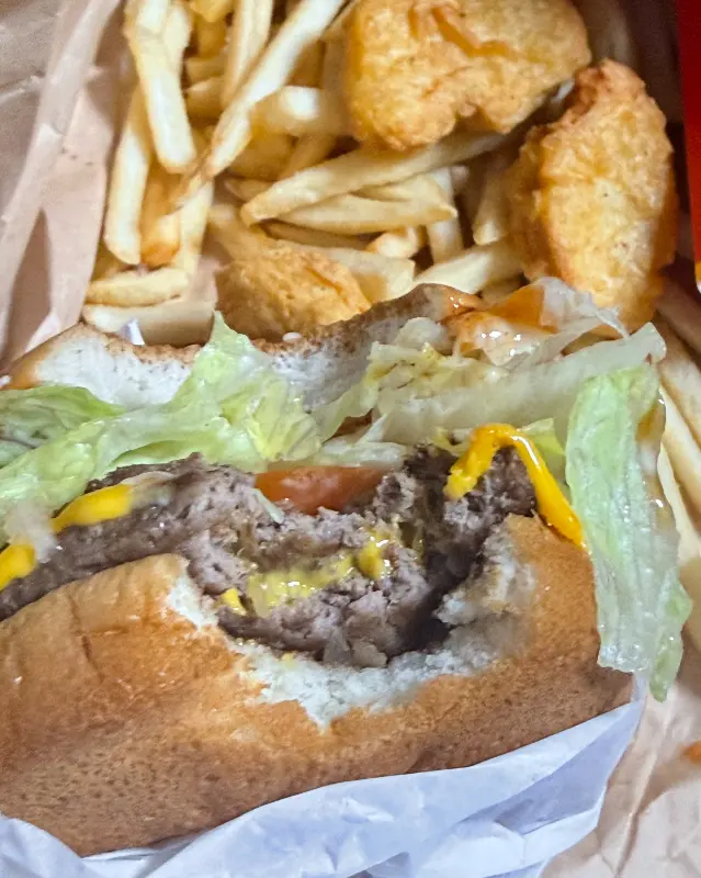 행운버거 골드 세트는 역시 실망시키지 않았어. 쫄깃한 빵과 촉촉한 패티, 그리고 특제 소스의 조합은 언제 먹어도 최고야. 특히 행운버거는 먹을 때마다 뭔가 좋은 일이 생길 것 같은 기분이 들어서 더 좋아.