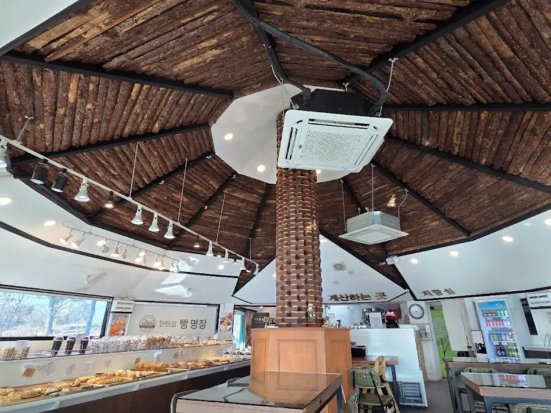 새벽 안개 걷히지 않은 길을 달려 도착한 빵집은, 마치 자연 속에 숨겨진 보석 같은 곳이었어요. 밖에서 보는 모습도 예사롭지 않았지만, 문을 열고 들어서는 순간, 나무 향이 은은하게 풍기는 실내 풍경에 마음을 빼앗겨 버렸지 뭐예요. 천장을 올려다보니 나무로 엮은 독특한 구조가 눈에 띄었어요. 마치 커다란 나무 아래 있는 듯한 아늑함이 느껴졌습니다.