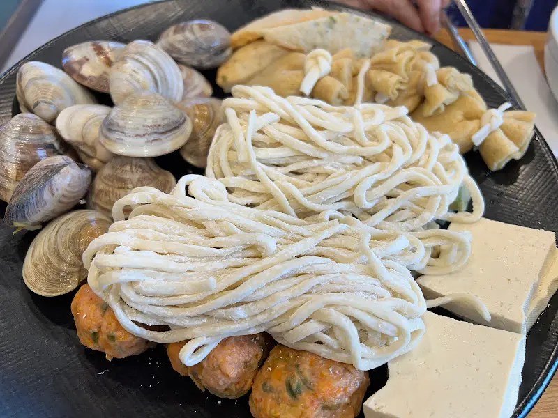 육수가 끓기 시작하자, 직원분이 오셔서 버섯과 야채를 먼저 넣고 끓이라고 안내해주셨다. 끓는 육수 속에서 버섯과 야채가 익어가는 동안, 은은하게 퍼지는 향긋한 버섯 향이 코끝을 간지럽혔다. 드디어 첫 번째 시식의 순간. 국자로 국물을 떠서 맛보니, 깔끔하면서도 깊은 풍미가 입안 가득 퍼져 나갔다. 자극적이지 않으면서도 감칠맛이 느껴지는 육수는, 재료 본연의 맛을 최대한으로 끌어올린 듯했다.