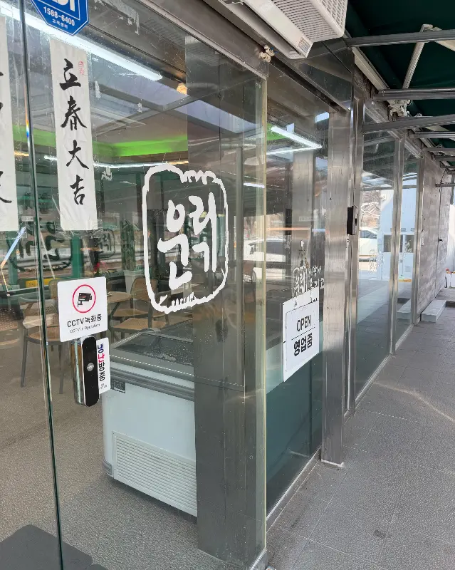 가게 문을 열고 들어서자 넓고 깔끔한 매장이 눈에 확 들어왔어. 테이블 간 간격도 넉넉해서 편안하게 식사할 수 있겠더라. 특히 단체석이 많아서 가족 단위 손님이나 모임 장소로도 딱 좋을 것 같았어. 우리가 방문했을 때도 가족 외식하러 온 테이블이 꽤 많아 보였거든. 를 보면 통유리 너머로 보이는 깔끔한 가게 외관이 바로 느껴질 거야.