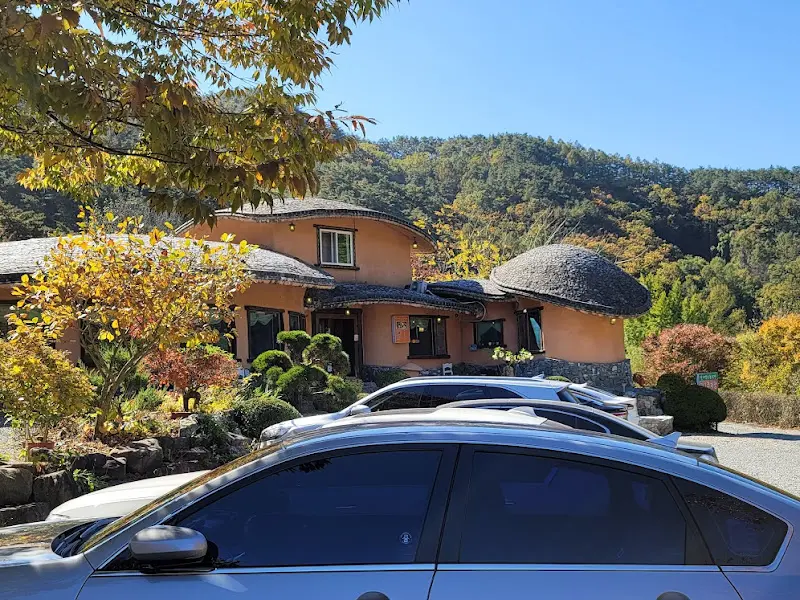 식당 외관부터가 뭔가 범상치 않았어. 버섯 모양을 딴 아담한 건물이 눈에 띄더라고. 주변 풍경과 어우러져서 묘하게 동화 속에 들어온 듯한 느낌도 들었어. 식당 간판에는 “달기약수촌”이라고 큼지막하게 쓰여 있었는데, 밤에는 빛나는 간판이 더 눈에 띌 것 같아.