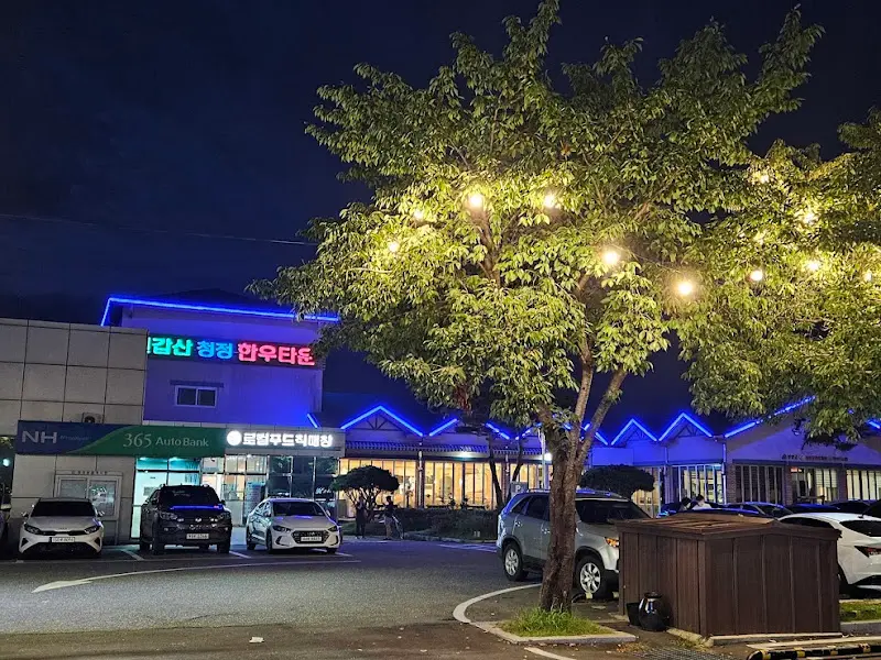 저녁 무렵 도착한 한우타운은 은은한 조명 아래 정갈한 모습이었다. 멀리 보이는 NH 호텔의 모습과 주변을 둘러싼 푸른 나무들이 어우러져 평화로운 분위기를 자아냈다. 특히 밤하늘 아래 빛나는 나무의 모습은 인상적이었다. 굽이굽이 이어진 길을 따라 도착한 이곳은 마치 숨겨진 보석과도 같은 느낌을 주었다.