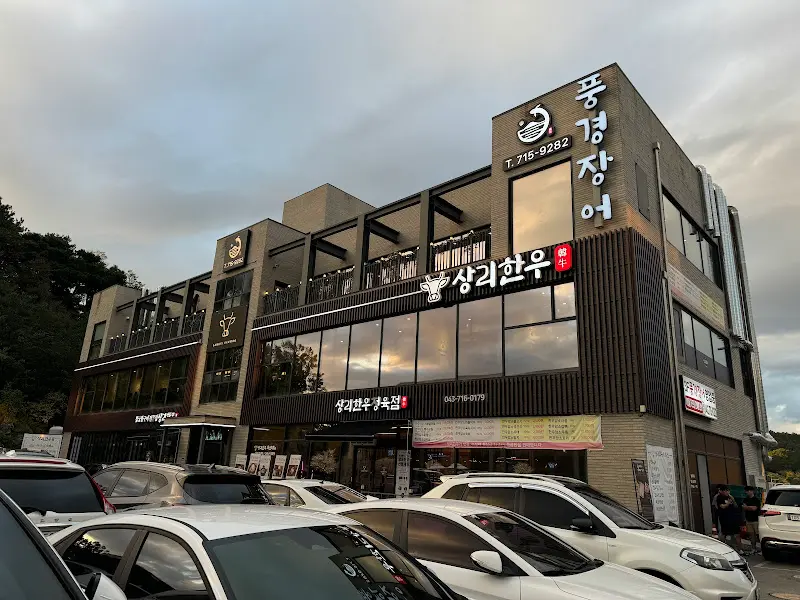 드디어 벼르고 벼르던 풍경장어 방문! 어머님 모시고 몸보신 제대로 시켜드리려고 청주 맛집 폭풍 검색하다가 찾아낸 곳인데, 진짜… 여기는 찐이다. 인공 폭포 뷰를 자랑하는 식당이라니, 들어가기 전부터 기대감이 하늘을 찔렀다. 주차장도 넓어서 편하게 주차하고 딱 내렸는데, 웅장한 건물이 눈에 확 들어왔다. 외관부터 느껴지는 고급스러움! 얼른 들어가보자고 어머님 손을 잡고 안으로 향했다.