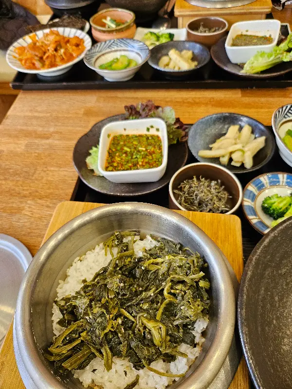 반찬 하나하나에도 정성이 느껴졌어. 갓김치는 아삭하고 시원했고, 콩나물무침은 간이 딱 맞았어. 특히 곱창김은 진짜 요물! 짭짤하면서도 고소한 맛이 밥도둑이 따로 없더라. 리필은 필수!