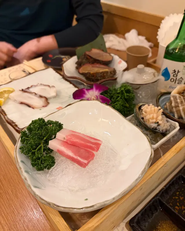 이미지들을 쭉 훑어보니, 진짜 비주얼부터 장난 아니었네. 싱싱한 해산물들이 테이블 위에 펼쳐진 모습, 다시 봐도 군침이 싹 돈다. 특히 참치회 플레이팅, 예술 그 자체. 꽃 장식까지 더해져 눈까지 즐거웠다.