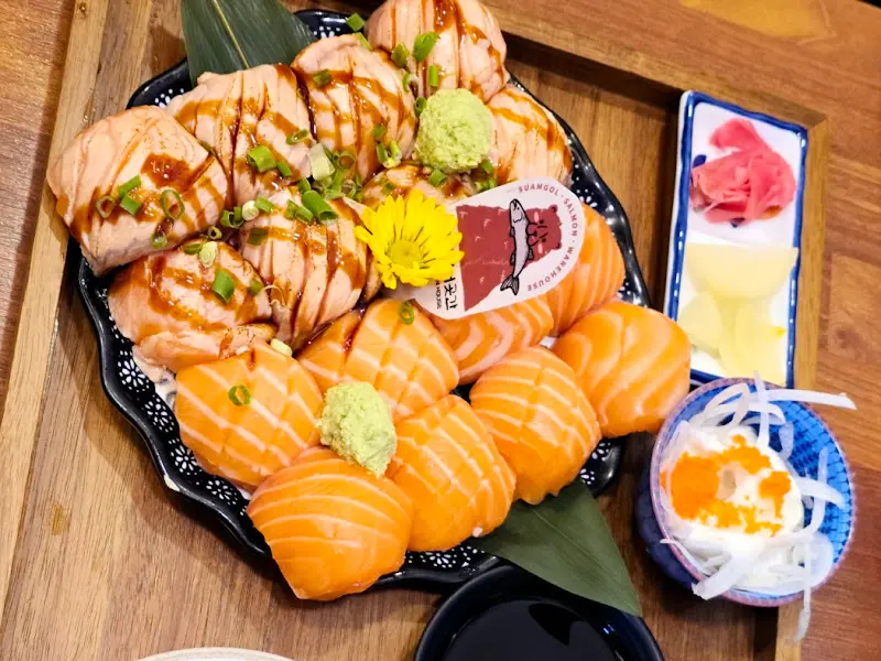 결국 고민 끝에, 이 집의 대표 메뉴라는 “꽃망울 연어초밥”을 시켜봤어. 사진으로 봤을 때부터 어찌나 먹음직스럽던지! 게다가 연어를 별로 안 좋아하는 사람들을 위해 돈까스나 덮밥류도 준비되어 있다는 점이 참 마음에 들었어. 누구랑 와도 걱정 없겠더라.