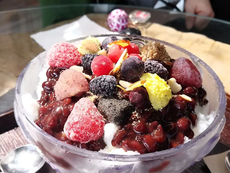 잠시 후, 주문한 메뉴가 나왔다. 눈꽃빙수는 마치 겨울 산처럼 소복하게 쌓여 있었고, 그 위에는 팥과 앙증맞은 과일들이 알록달록하게 장식되어 있었다. 블루베리 주스는 보기만 해도 시원함이 느껴지는, 옅은 보랏빛을 띠고 있었다. 나는 조심스럽게 숟가락을 들어 눈꽃빙수 한 입을 맛보았다. 입 안에서 사르르 녹아내리는 부드러운 얼음과 달콤한 팥, 상큼한 과일의 조화는, 그야말로 환상적이었다. 블루베리 주스 역시, 신선한 블루베리의 풍미가 그대로 느껴지는, 훌륭한 맛이었다.