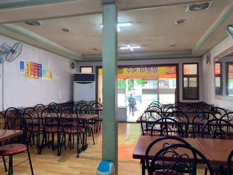 파라다이스 떡볶이집에 도착했을 때, 가장 먼저 눈에 들어온 건 세월의 흔적이 느껴지는 외관이었다. 붉은 벽돌 건물 위에 큼지막하게 쓰여 있는 “파라다이스 떡볶이” 간판은 마치 과거로 돌아가는 듯한 느낌을 주었다. 에서 볼 수 있듯이, 간판 글씨체마저 정겹게 느껴지는 건 아마도 오랜 시간 이 자리를 지켜온 덕분이겠지. 왠지 모르게 마음이 따뜻해지는 기분이었다. 가게 문을 열고 들어서니, 생각보다 넓은 공간이 펼쳐졌다. 테이블은 넉넉하게 준비되어 있었고, 혼자 온 나도 편안하게 앉을 수 있는 자리가 많아 보였다. 혼밥 레벨 1단계 클리어!