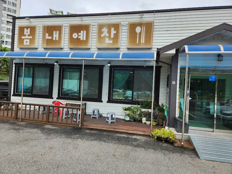 낯선 도시의 골목길을 따라 도착한 ‘봄내예찬’은 소박하면서도 정겨운 외관으로 나를 맞이했다. 하얀색 외벽에 ‘봄내예찬’이라는 간판이 정갈하게 걸려 있었고, 파란색 어닝이 햇빛을 가려주는 테라스에는 작은 화분들이 놓여 있었다. 마치 시골 할머니 댁에 방문한 듯 푸근한 느낌이 들었다. 을 보면, 외부에서부터 느껴지는 편안함이 인상적이다.