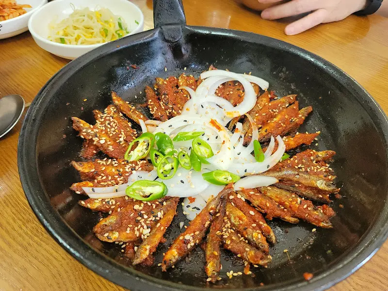 드디어 등장한 도리뱅뱅! 비주얼부터 심상치 않아. 멸치보다는 조금 큰 잡어들이 뱅글뱅글 돌려 담겨 있는데, 윤기가 좌르르 흐르는 게 침샘 폭발 직전! 같이 나온 양파, 풋고추와 함께 한 입 먹으니… Yo! 이거 완전 신세계! 적절한 간에 깔끔한 뒷맛, 짭짤하면서도 매콤한 게 완전 내 스타일이야. 마치 잘 만들어진 힙합 비트처럼, 입 안에서 맛들이 팡팡 터지는 느낌! 어죽 나오기 전에 입가심으로 딱 좋은 메뉴지.
