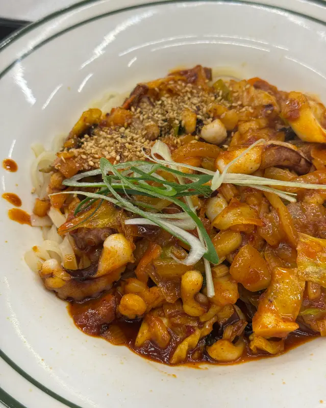 잠시 후, 드디어 기다리던 낙지비빔칼국수가 등장했다.