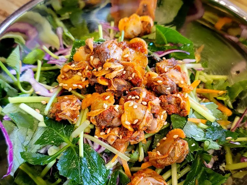 채소의 아삭함도 꼬막 비빔밥의 만족도를 높이는 데 크게 기여했습니다. 양상추, 적채 등 다양한 채소는 각각 다른 식감과 향을 가지고 있어, 꼬막의 풍미를 더욱 다채롭게 만들어 주었습니다. 섬유질이 풍부한 채소는 소화를 돕고, 포만감을 높여주는 효과도 있습니다. 꼬막과 채소의 조합은 영양학적으로도 훌륭한 균형을 이루고 있었습니다.