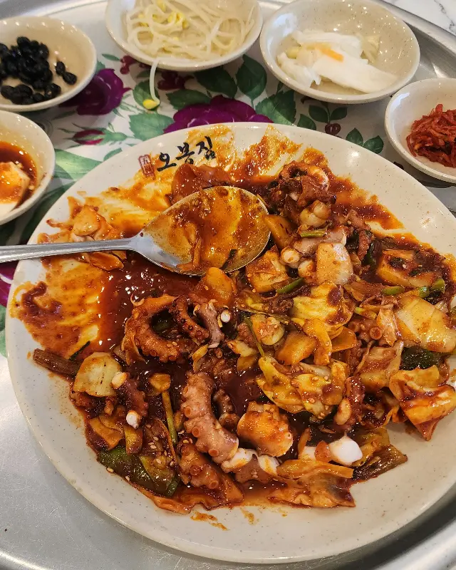 메뉴판을 스캔하니, 낙지볶음, 보쌈, 연포탕… 힙스터들의 취향을 저격하는 다채로운 라인업이 펼쳐졌어. 고민 끝에 오봉스페셜 (낙지볶음+보쌈+쟁반막국수) 세트를 주문! 이 조합, 완전 힙하지 않아? 마치 랩 피처링처럼 환상의 케미를 기대하며 침을 꼴깍 삼켰지.