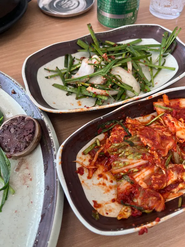 순대국밥과 함께 제공되는 겉절이, 깍두기, 익은 김치, 양파, 고추 등의 반찬도 훌륭했다. 특히 겉절이는 신선하고 아삭한 식감이 좋았고, 순대국밥과 환상적인 조화를 이루었다. 깍두기는 적당히 익어 시원하고 깔끔한 맛을 자랑했다. 순대국밥 한 입, 겉절이 한 입 번갈아 먹으니, 쉴 새 없이 숟가락질을 하게 되었다.