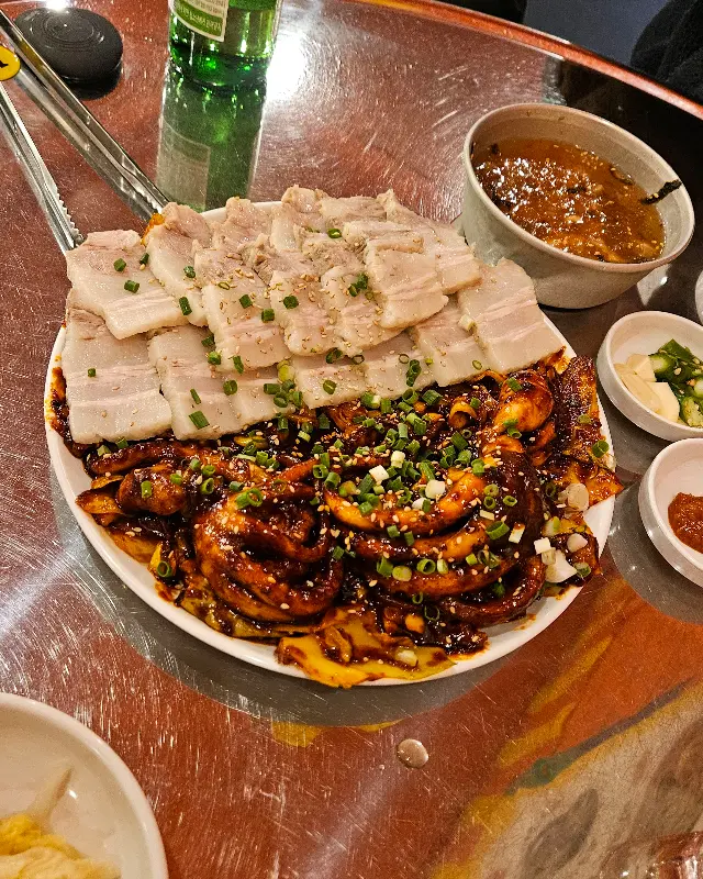 매콤한 낙지볶음과 담백한 수육의 환상적인 만남