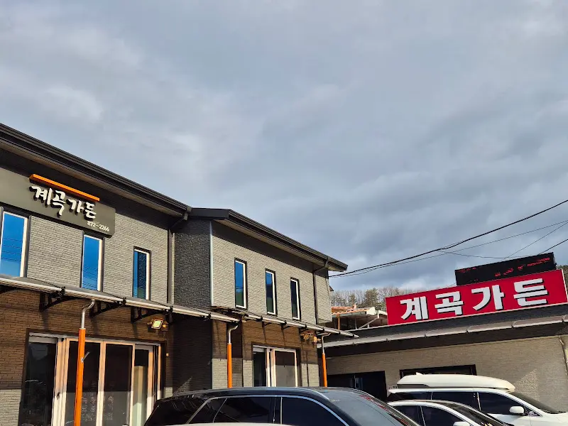 네비게이션에 주소를 찍고 굽이굽이 길을 따라 들어가니, 저 멀리 웅장한 기와지붕의 식당이 눈에 들어왔어. 외관부터가 ‘나 맛집이야’라고 말하는 듯한 포스! 넓찍한 주차장에 차를 대고 식당 입구로 향하는데, 깔끔하게 정돈된 모습이 딱 내 스타일이더라. 간판에는 귀여운 닭 그림과 함께 ‘계곡가든’이라는 상호가 큼지막하게 적혀 있었어.