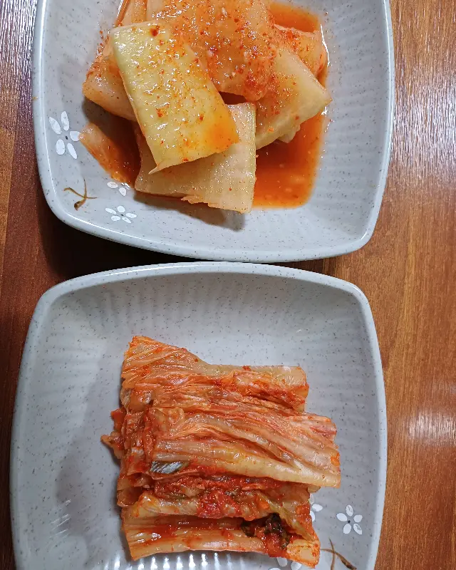 김치는 딱 봐도 맛있게 익은 비주얼이었고, 깍두기는 시원하면서도 아삭한 식감이 기대되는 모습이었어. 솔직히 칼국수 맛집은 김치 맛이 정말 중요하잖아? 기대감을 안고 김치부터 한 입 먹어봤는데, 역시나! 적당히 익은 김치의 깊은 맛이 입안 가득 퍼지면서, 칼국수에 대한 기대감을 더욱 높여줬어. 깍두기 역시 시원하고 아삭해서 정말 맛있었어. 칼국수랑 환상궁합일 것 같은 느낌적인 느낌!