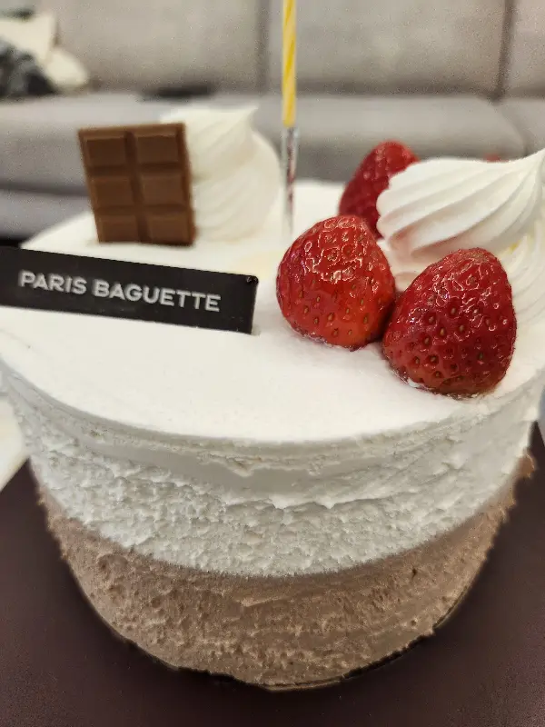 무엇을 먹을까 행복한 고민에 빠졌다. 파리바게뜨에는 정말 다양한 빵들이 있었는데, 특히 아이들이 좋아할 만한 빵들이 많아 보였다. 달콤한 초콜릿이 듬뿍 묻은 빵부터, 귀여운 캐릭터 모양의 빵까지. 보기만 해도 기분이 좋아지는 빵들이 가득했다. 빵뿐만 아니라 케이크 종류도 다양했다. 부드러운 생크림 케이크부터, 상큼한 딸기 케이크, 그리고 고구마 케이크까지. 기념일에 맞춰 케이크를 사러 오는 사람들도 많다고 한다. 쇼케이스 안에는 형형색색의 케이크들이 진열되어 있었는데, 그 모습이 마치 보석 상자를 보는 듯 화려하고 아름다웠다. 특히 눈에 띈 것은 딸기가 듬뿍 올라간 케이크였다. 싱싱한 딸기의 붉은 색감이 하얀 생크림과 어우러져 먹음직스러워 보였다.