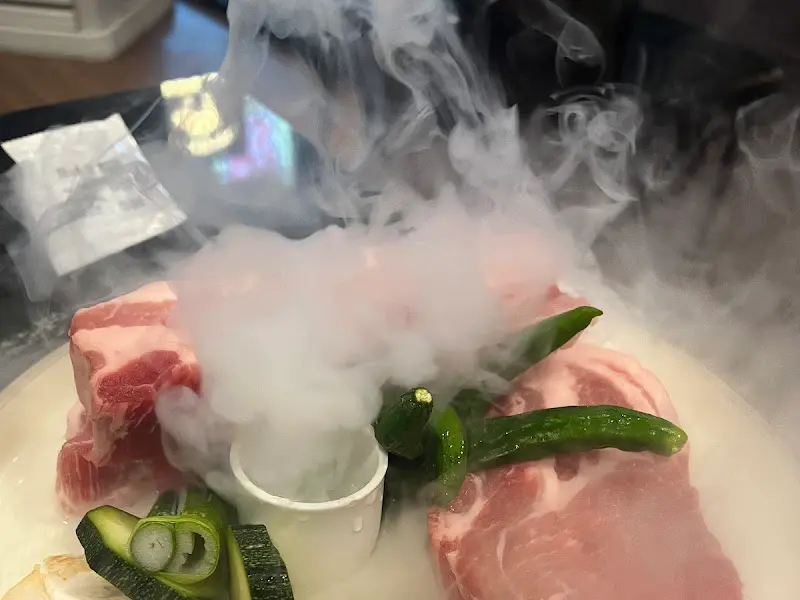드라이아이스와 함께 제공되는 돼지고기