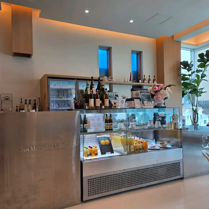 건물은 해안선을 따라 길게 뻗어 있었고, 통유리창 너머로 보이는 푸른 바다가 시선을 사로잡았습니다. 주차장에 차를 대고 카페로 향하는 엘리베이터에 몸을 실었습니다. 2층 버튼을 누르고, 문이 열리는 순간, 탄성이 절로 나왔습니다. 눈앞에 펼쳐진 것은 그야말로 압도적인 풍경이었습니다.