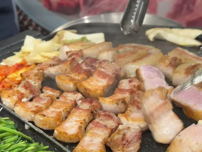 특히 인상적이었던 것은 곁들여 먹는 반찬들이었다. 특히 푹 익은 김치를 솥뚜껑에 구워 고기와 함께 먹으니, 김치 유산균의 발효 과정에서 생성된 유기산이 돼지고기의 지방과 만나 환상적인 궁합을 자랑했다. 마치 잘 설계된 분자 요리처럼, 맛의 조화가 과학적으로 계산된 듯한 느낌이었다.
