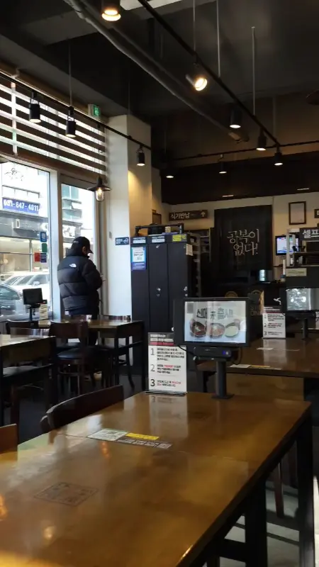 주차는 건물 지하에 하면 되니까 걱정 없고, 혹시 차를 안 가져왔더라도 학원가 근처라 접근성도 끝내준다. 매장 안으로 들어서니 생각보다 넓고 테이블 간 간격도 넉넉해서 좋았어. 요즘 같은 시국에는 이런 점이 더 중요하게 느껴지잖아. 벽면에 붙어있는 메뉴 사진들을 보니까 뭘 먹어야 할지 엄청 고민되더라. 다 맛있어 보이는 비주얼이었거든.