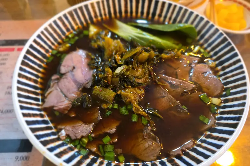 여기서 잠깐! 우향원 우육면을 더욱 맛있게 즐기는 팁이 있다. 테이블 위에 비치된 라조유를 살짝 넣어 먹으면 매콤한 풍미가 더해져 더욱 깊은 맛을 느낄 수 있다. 또한, 사장님께 간장처럼 보이는 특별한 소스를 요청해 맛보는 것도 추천한다. 발사믹 식초와 비슷한 이 소스는 우육면의 느끼함을 잡아주고 깔끔한 맛을 더해준다.
