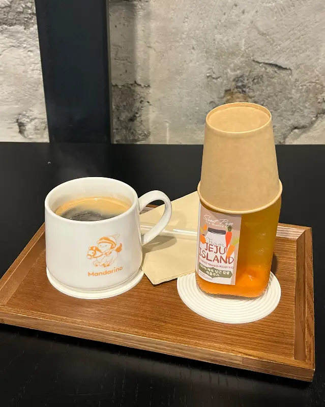 만다리노에 왔다면 만다리노 커피를 빼놓을 수 없죠. 귤즙이 살짝 들어간 아메리카노는 첫 모금부터 신선한 충격을 줬습니다. 은은하게 퍼지는 귤 향은 커피의 쌉싸름한 맛과 절묘하게 어우러져, 전에 경험해보지 못했던 독특한 풍미를 선사했습니다. 마치 제주의 햇살을 그대로 담아낸 듯한 상큼함이 입안 가득 퍼져 나갔습니다. 가격은 5,500원으로, 훌륭한 맛과 특별한 경험을 고려하면 결코 아깝지 않은 선택이었습니다.